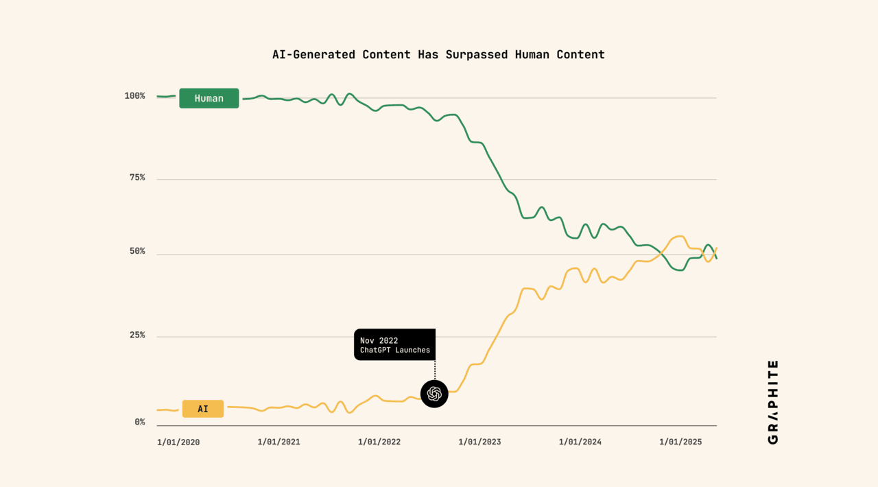 Now, that theory has become a reality - there is more AI-generated content on the internet than human-created content.