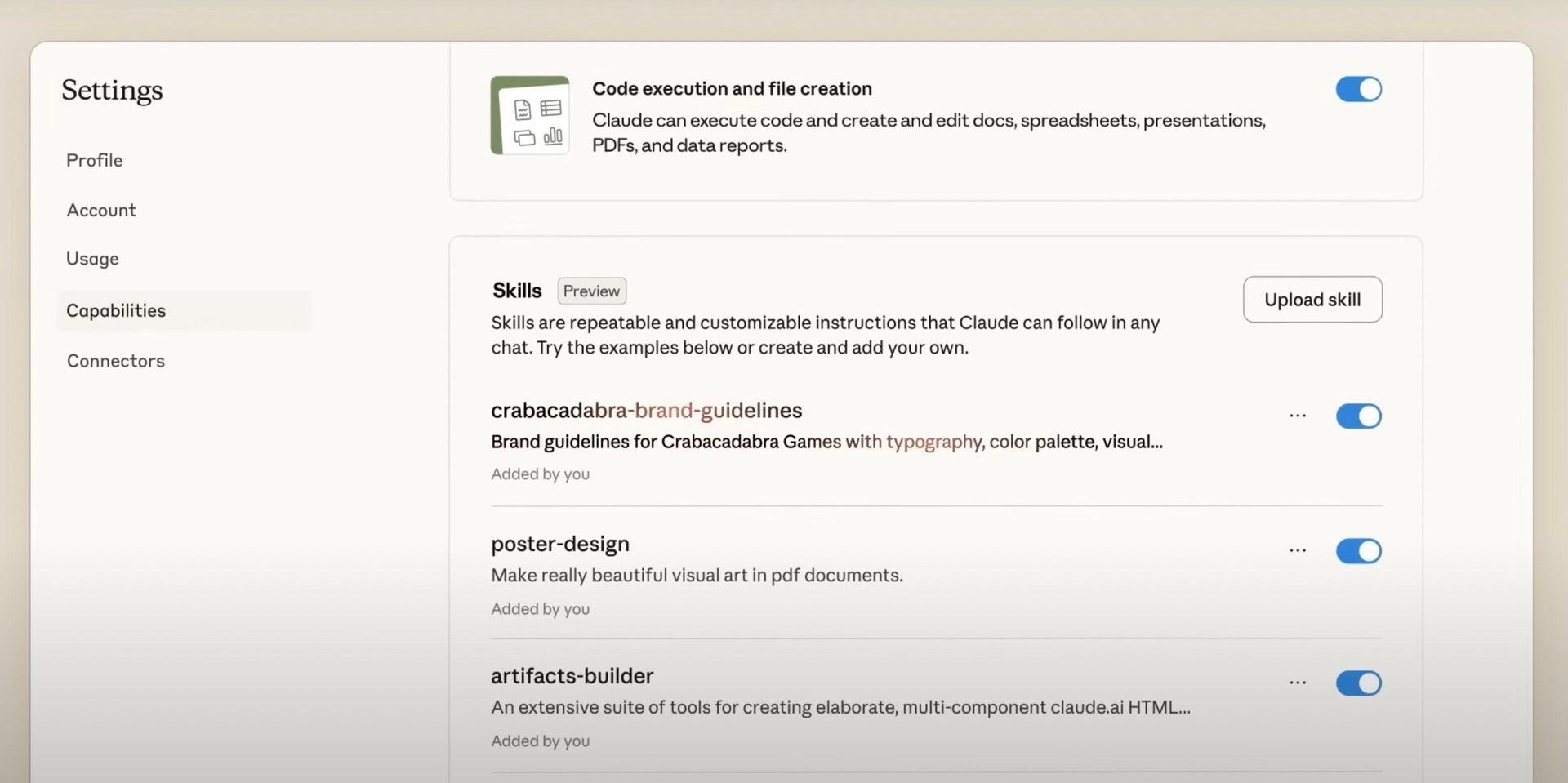 You upload them as a folder into Claudeās brain, and then it can call upon that Skill when delivering work.